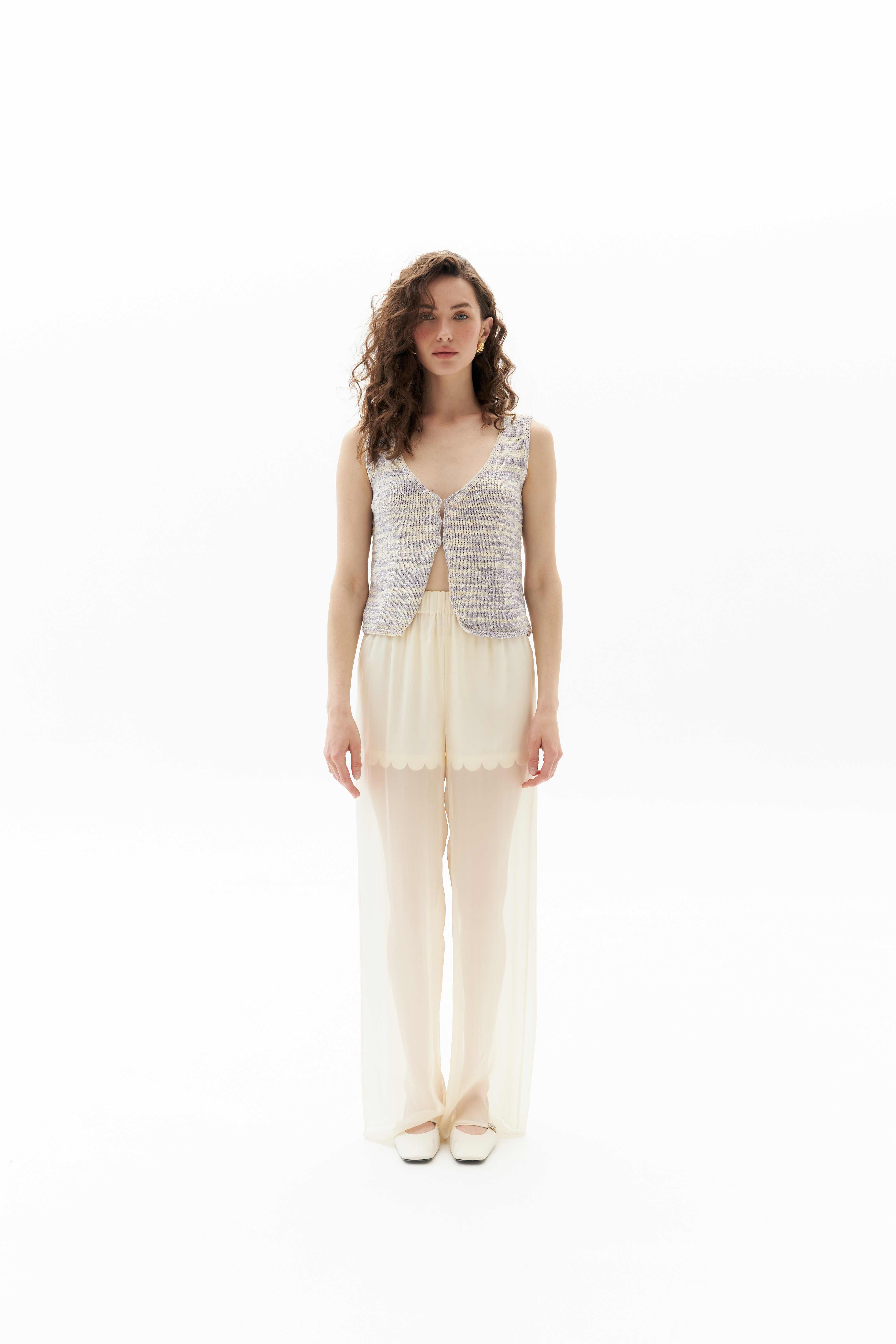Додайте яскравий акцент до вашого гардеробу з нашим синім жилетом. Цей універсальний виріб ідеально підходить для нашарування, має елегантний дизайн та яскравий колір, що підходить до будь-якого стилю. Чи то у поєднанні з джинсами для повсякденного вигляду, чи у вбранні з брюками, синій жилет - обов'язкова річ для модників.