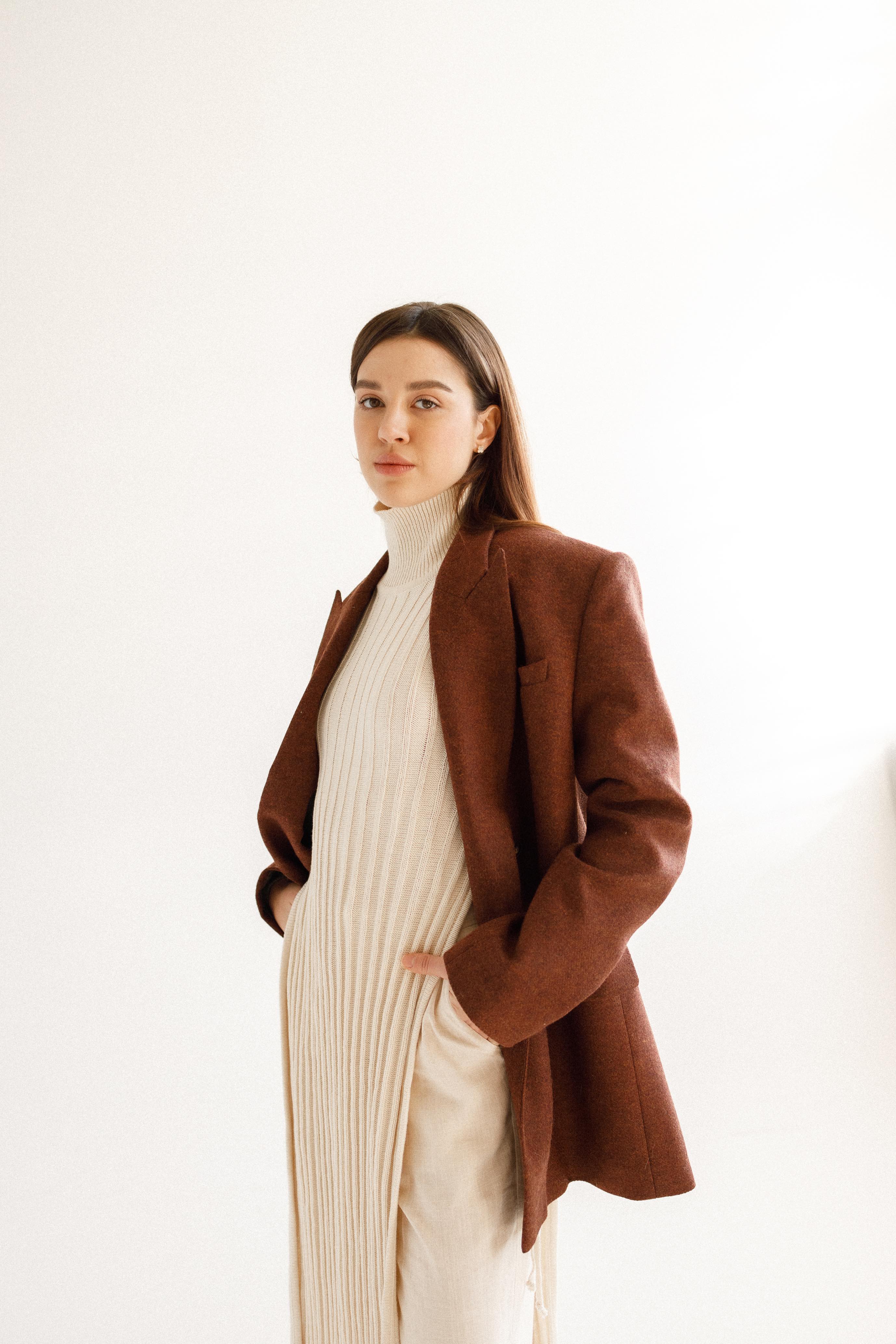 Зріст моделі 175 см. 40% вовна, 53% бавовна, 7% поліестер. Сформуйте свій гардероб з нашим жакетом. Цей розкішний вигляд поєднує в собі бездоганну обробку з багатими, земляними тонами осені, що робить його незамінним як для офісу, так і для вишуканої елегантності. Преміум конструкція та преміум тканина гарантують, що він облягає вашу фігуру, створюючи стрункий силует.
