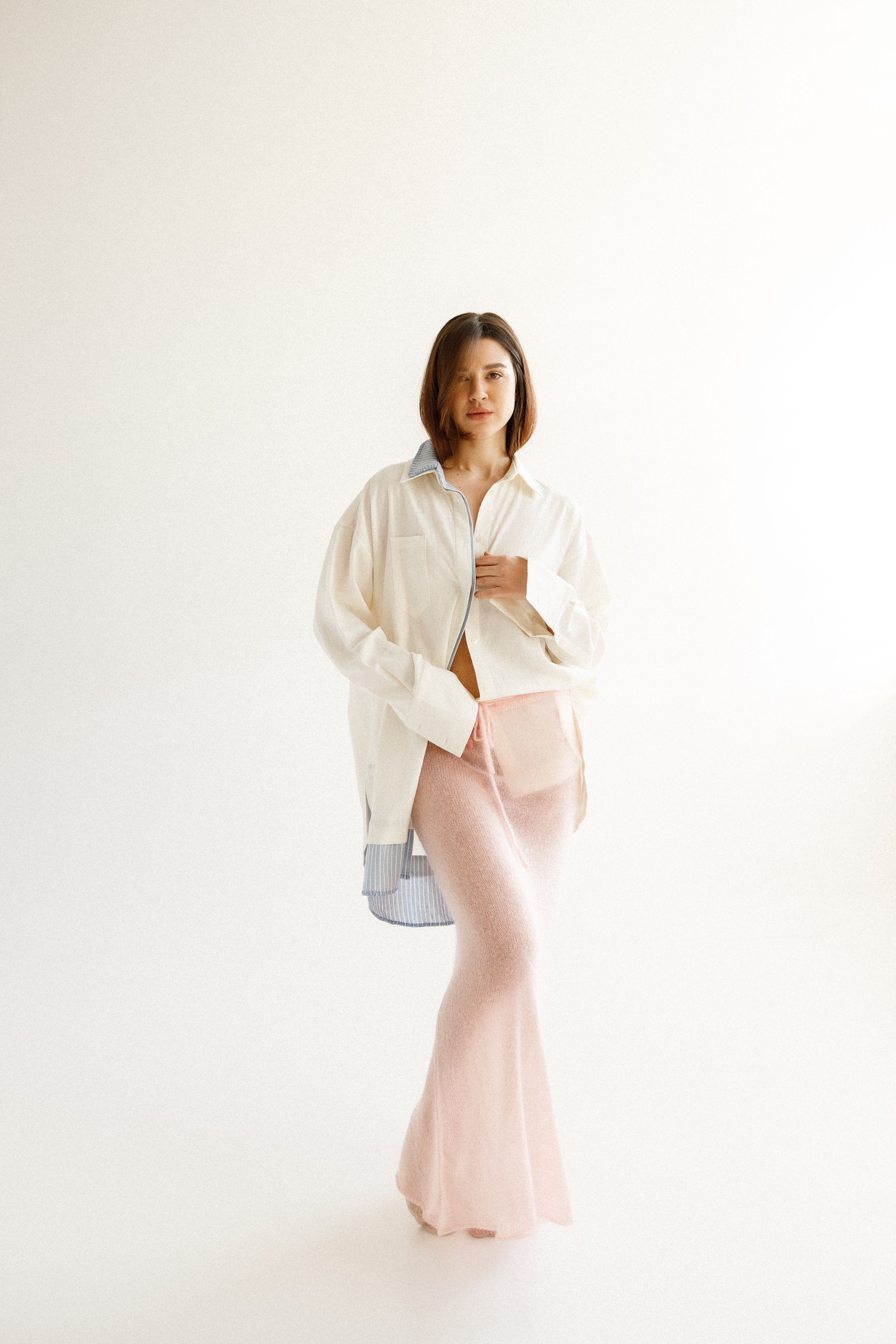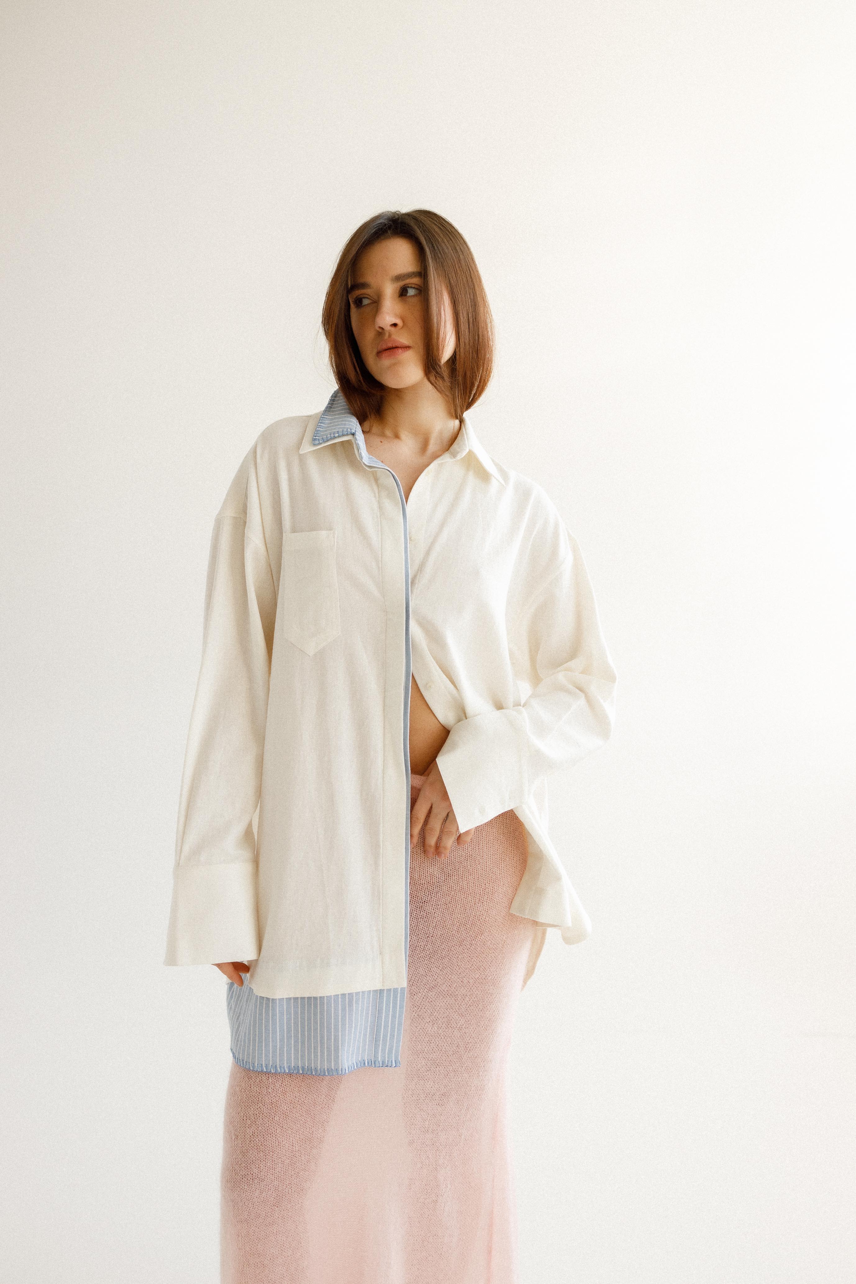 Пропонуємо вам нашу елегантну оверсайз сорочку з льону – універсальне та позачасове доповнення до вашого гардеробу. Поєднуючи невимушену елегантність оверсайз силуету з витонченим оформленням смужки, ця сорочка стане вашим ідеальним вибором для стриманої елегантності.