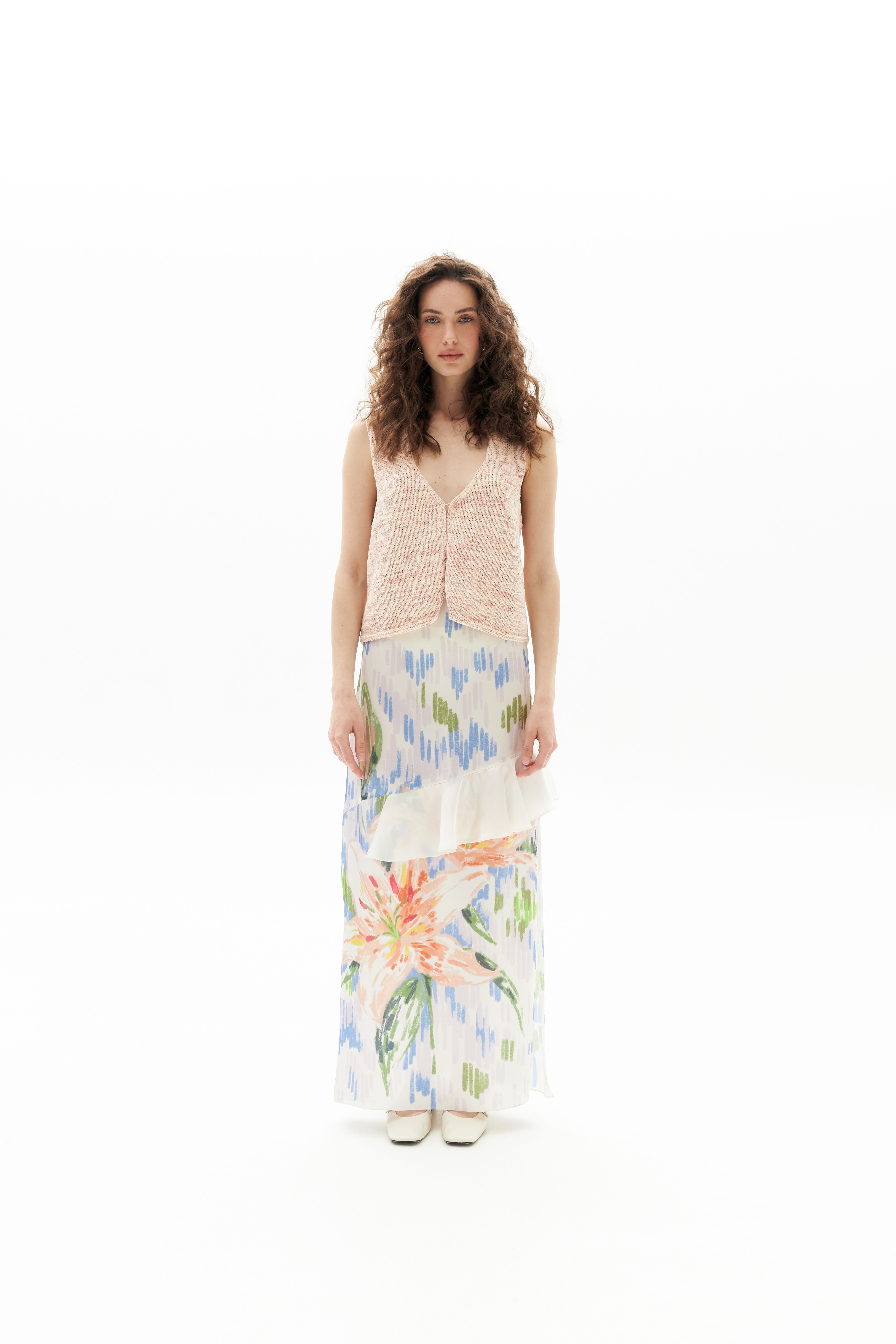 Крокуйте в елегантність з нашою спідницею Ліліум. Цей красивий виріб має квітковий візерунок та плинний силует, ідеальний для повсякденних і формальних випадків. Легка тканина та вигідна посадка роблять спідницю Ліліум обов'язковою для будь-якого гардеробу. Малюнок був створений дизайнером, натхненним імпресіонізмом і самим Моне.